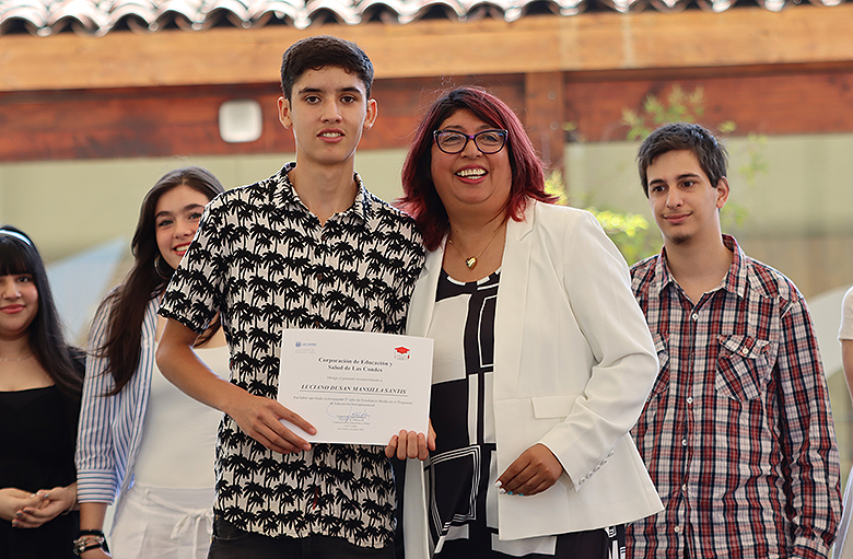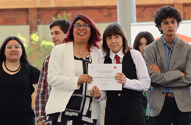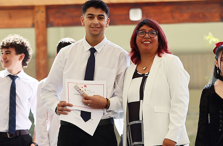 Uno de los momentos más memorables de la jornada fue el número musical a cargo de las estudiantes Danta Vega y Julieta Gálvez, ambas de segundo medio, quienes cautivaron a los asistentes con su talento y dedicación. Asimismo, la ceremonia incluyó el emotivo discurso de graduación de cuarto medio, escrito y leído por la estudiante Renata Sánchez, mientras que los padres de Vicente Ascencio, también estudiante de cuarto medio, compartieron unas palabras llenas de gratitud y orgullo hacia el programa y la comunidad educativa.