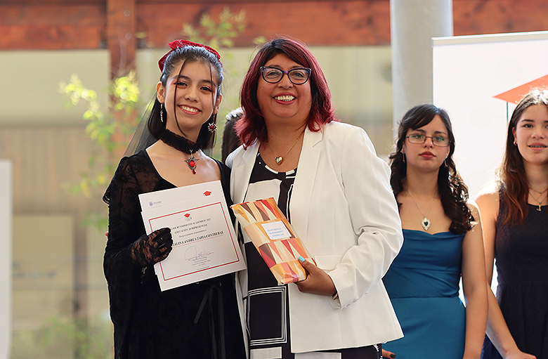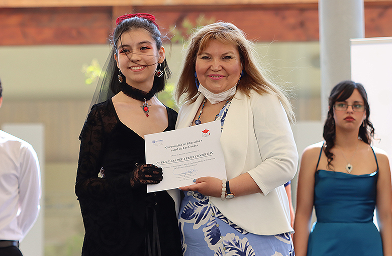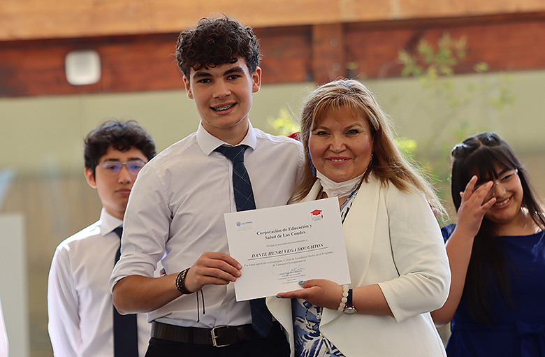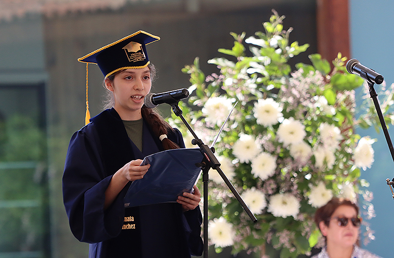 Uno de los momentos más memorables de la jornada fue el número musical a cargo de las estudiantes Danta Vega y Julieta Gálvez, ambas de segundo medio, quienes cautivaron a los asistentes con su talento y dedicación. Asimismo, la ceremonia incluyó el emotivo discurso de graduación de cuarto medio, escrito y leído por la estudiante Renata Sánchez, mientras que los padres de Vicente Ascencio, también estudiante de cuarto medio, compartieron unas palabras llenas de gratitud y orgullo hacia el programa y la comunidad educativa.
